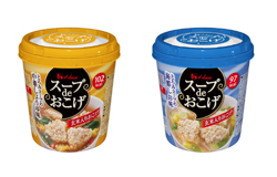 カップに「具入り粉末スープ」を入れてお湯を注いでよくかき混ぜ、1分後に「玄米入りおこげ」を割り入れるだけで、手軽に「最初カリカリ、後からモチッと」した食感のおこげ入りの中華風とろみスープをお召し上がりいただけます。