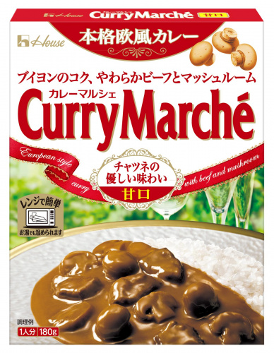 マッシュルーム(中国)、牛肉、牛脂豚脂混合油、小麦粉、砂糖、チャツネ、みそ、バターミルクパウダー、カレーパウダー、ウスターソース、トマトペースト、食塩、生クリーム、ソテーオニオン、フルーツチャツネ、ホワイトルウ、ガーリックペースト、りんごペースト、チキンブイヨン、でんぷん、香辛料、たん白加水分解物、酵母エキス加工品/調味料(アミノ酸等)、増粘剤(加工デンプン)、カラメル色素、乳化剤、酸味料、香料、香辛料抽出物、(一部に乳成分・小麦・牛肉・大豆・鶏肉・豚肉・りんごを含む) |