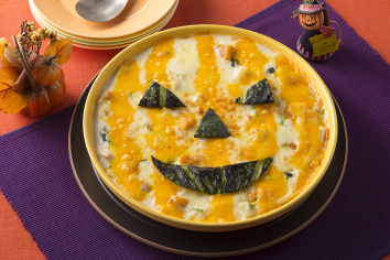 かぼちゃとほうれん草の顔デコグラタン