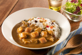 - 厚手の鍋にサラダ油を熱し、ひき肉と玉ねぎを焦がさないように炒める。