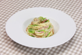- キャベツは半分に切り、芯の部分は薄切り、葉は1.5cm幅に切る。