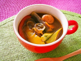 - (3)の鍋に(1)のマロニーを詰めたちくわとマロニーを刺したウインナーソーセージ、(2)の大根とブロッコリー、ゆで卵を加え、沸騰してから10分煮る。さらにトマトを加えて5分煮込み、火を止める。