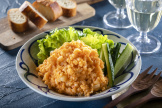 - 器に注ぎ入れ、(1)ののり、わさびをのせる。