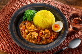 - いったん火を止め、ルウを割り入れて溶かし、再び弱火で時々かき混ぜながらとろみがつくまで約5分煮込む。(2)のなす、ミニトマトを加えてひと煮立ちさせる。