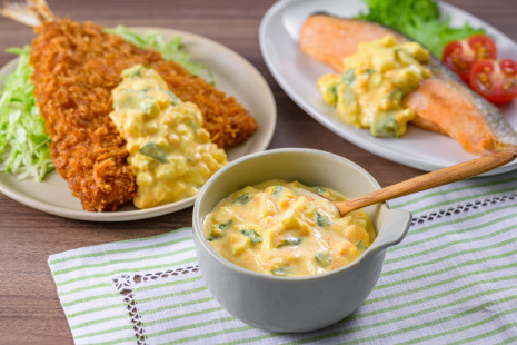 *アジフライや鮭のソテー、とり天などにつけるとおいしく召し上がれます。
