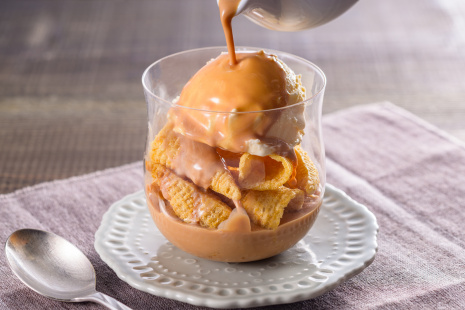 *【女子栄養大学の学生考案】冬のごほうびおやつにぴったり。ロイヤルミルクティー味のとんがりコーンだからこそ楽しめる、サクサク食感とほんのり香る紅茶の風味が、アイスクリームと温かいミルクティーによく合います。大人も子供も楽しめるレシピです!