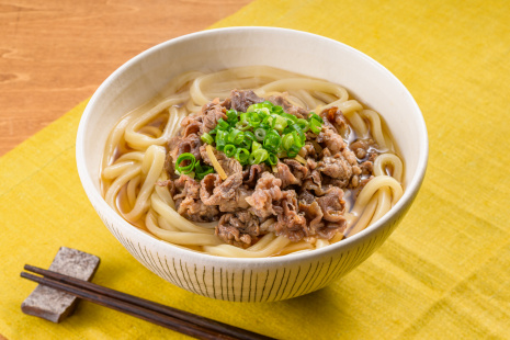 - 器に(3)のうどんと汁を盛り、(2)をのせる。お好みで小ねぎをちらす。