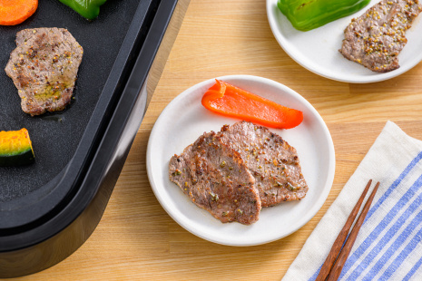 - ポリ袋に牛肉を入れ、すべての調味料を加えてよくもみ込む。(冷蔵庫で10分程度ねかせておく。)